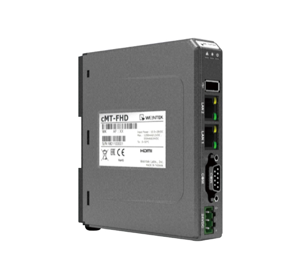 沿襲cMT系列豐富且多樣性的人機功能,將LCD螢幕與觸控面板移除後,透過HDMI輸出至任何螢幕尺寸,不再局限於市場現有的人機尺寸,並且同時可透過USB連接觸控裝置。
