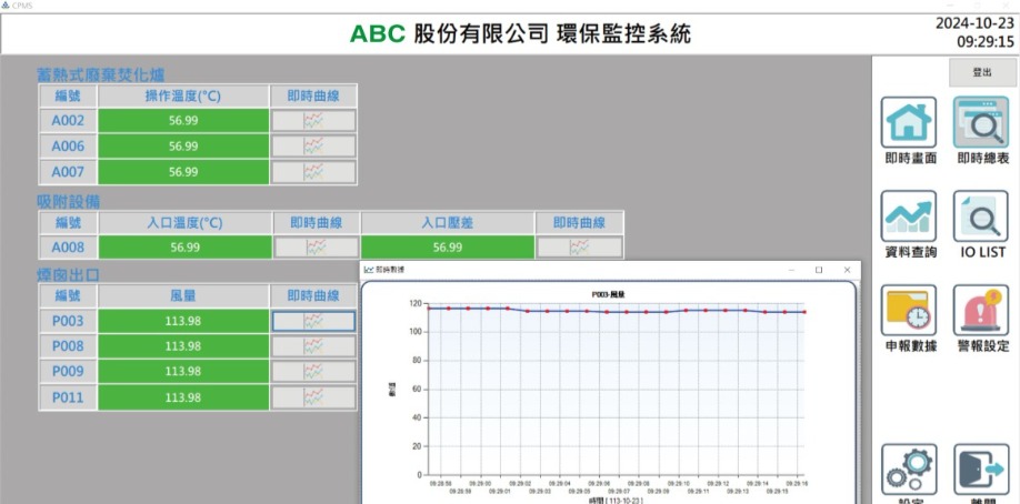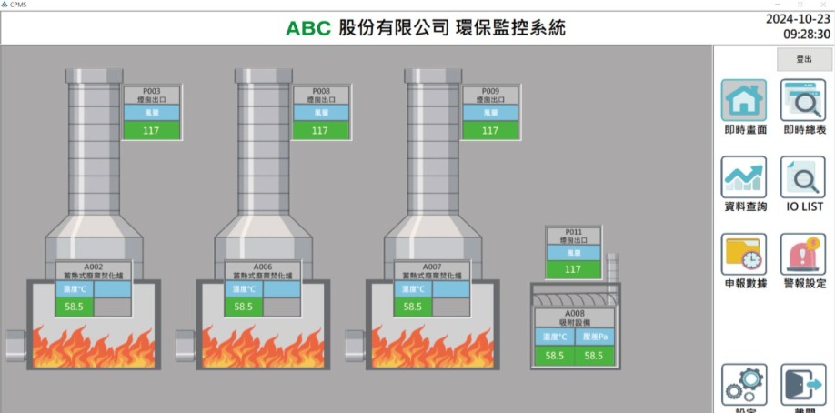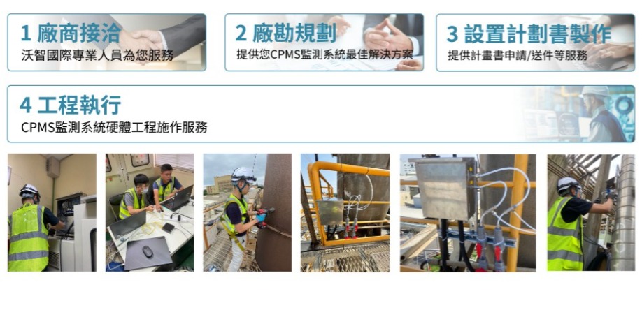 CPMS 連續自動參數監控系統(Continuous Parameter Monitoring Systems,簡稱CPMS) 沃智國際提供CPMS 固定汙染源防制設備即時監控作業(包含設計規劃、申請送件、工程執行、售後維護保養之統整性服務)。 客戶委託顧問服務 取得通過設置計劃函文 CPMS監控系統畫面 CPMS監控系統畫面 CPMS監控系統畫面 CPMS監測系統及連線傳輸架構圖